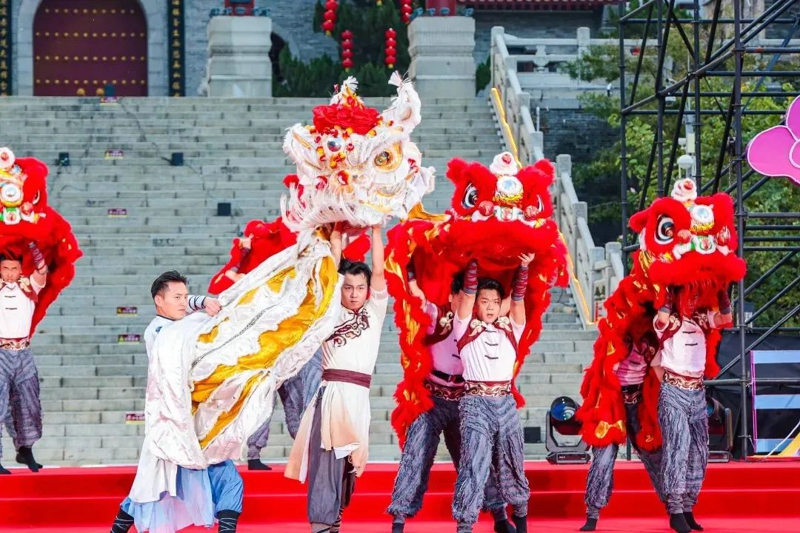 《醒·狮》选段《祥狮送吉》热闹喜庆,醒狮威风凛凛、灵活矫健,在雄浑的鼓点中转变身形,吸引了众多游客的目光。